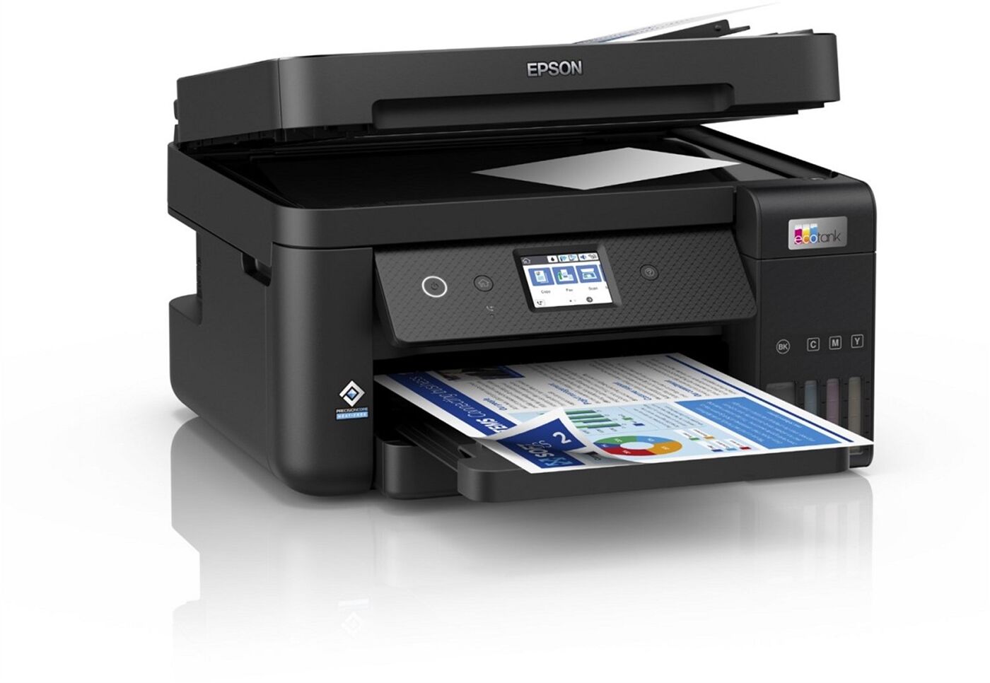 Dank der im Lieferumfang enthaltenen Tintenflaschen können die integrierten großvolumigen Tintentanks leicht nachgefüllt werden. Da keine Patronen ersetzt werden müssen und der Drucker flexible Konnektivitätsfunktionen, Fax und ADF bietet, ist er perfekt für alle geeignet, die hochwertige Ausdrucke zu unglaublich niedrigen Kosten pro Seite suchen.