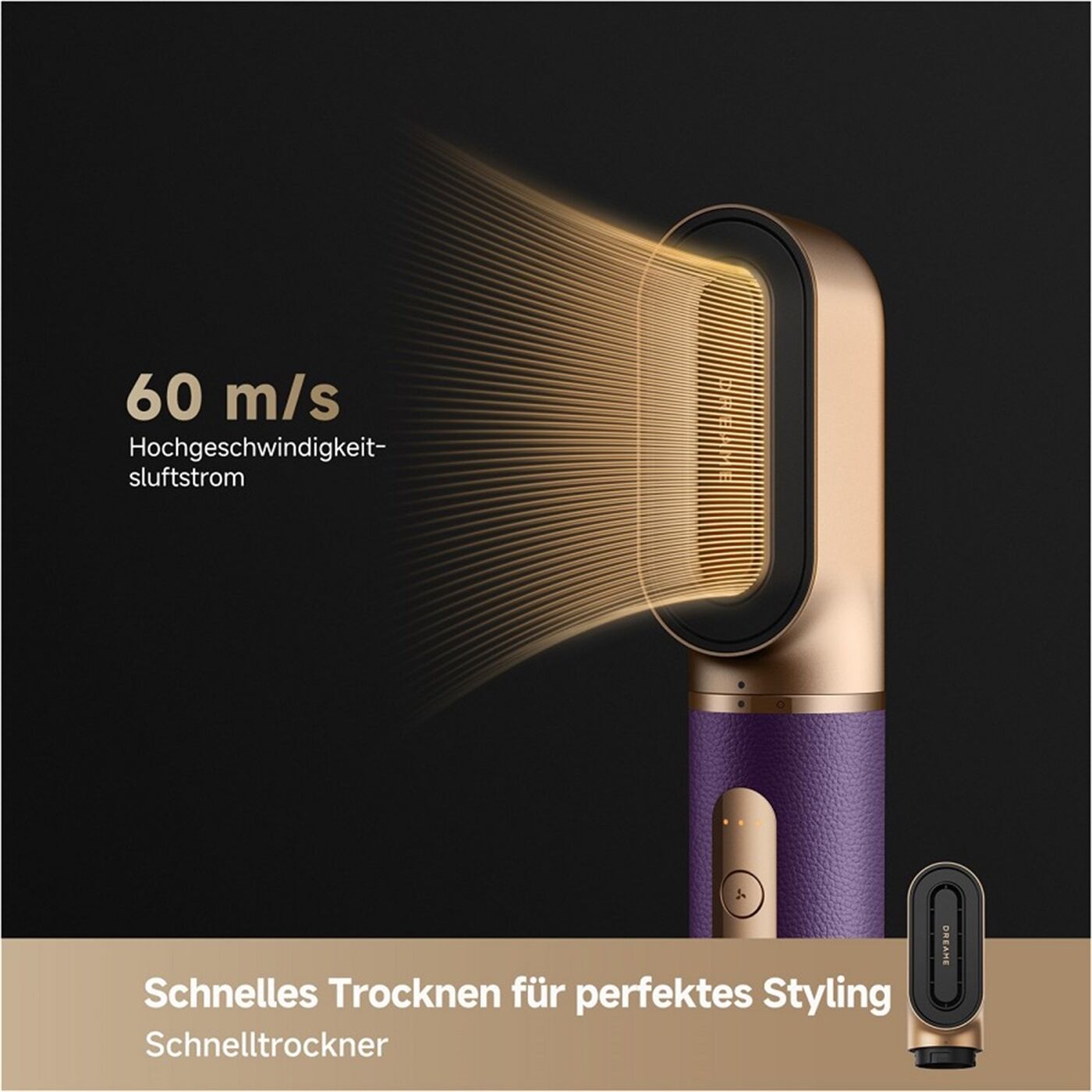 Der Hochgeschwindigkeitsluftstrom trocknet und stylt Ihre Haare effizient, ohne sie zu überhitzen.