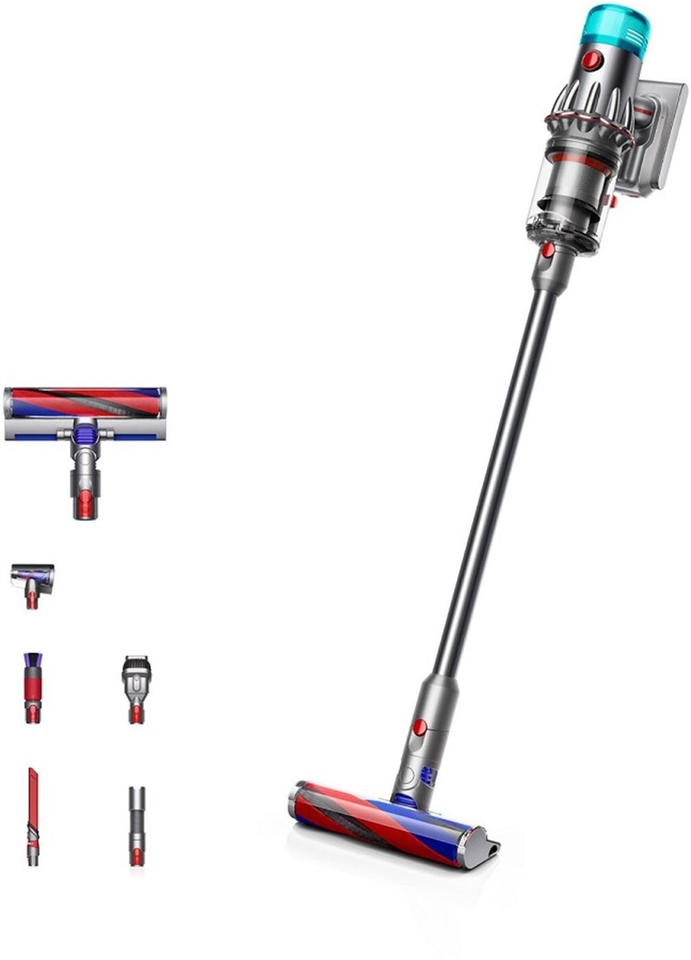 Wandhalterung mit Ladefunktion, Kombi-Zubehördüse, Haardüse, Aufsatz für enge Zwischenräume, kratzfreie Staubbürste, Verlängerungsschlauch.