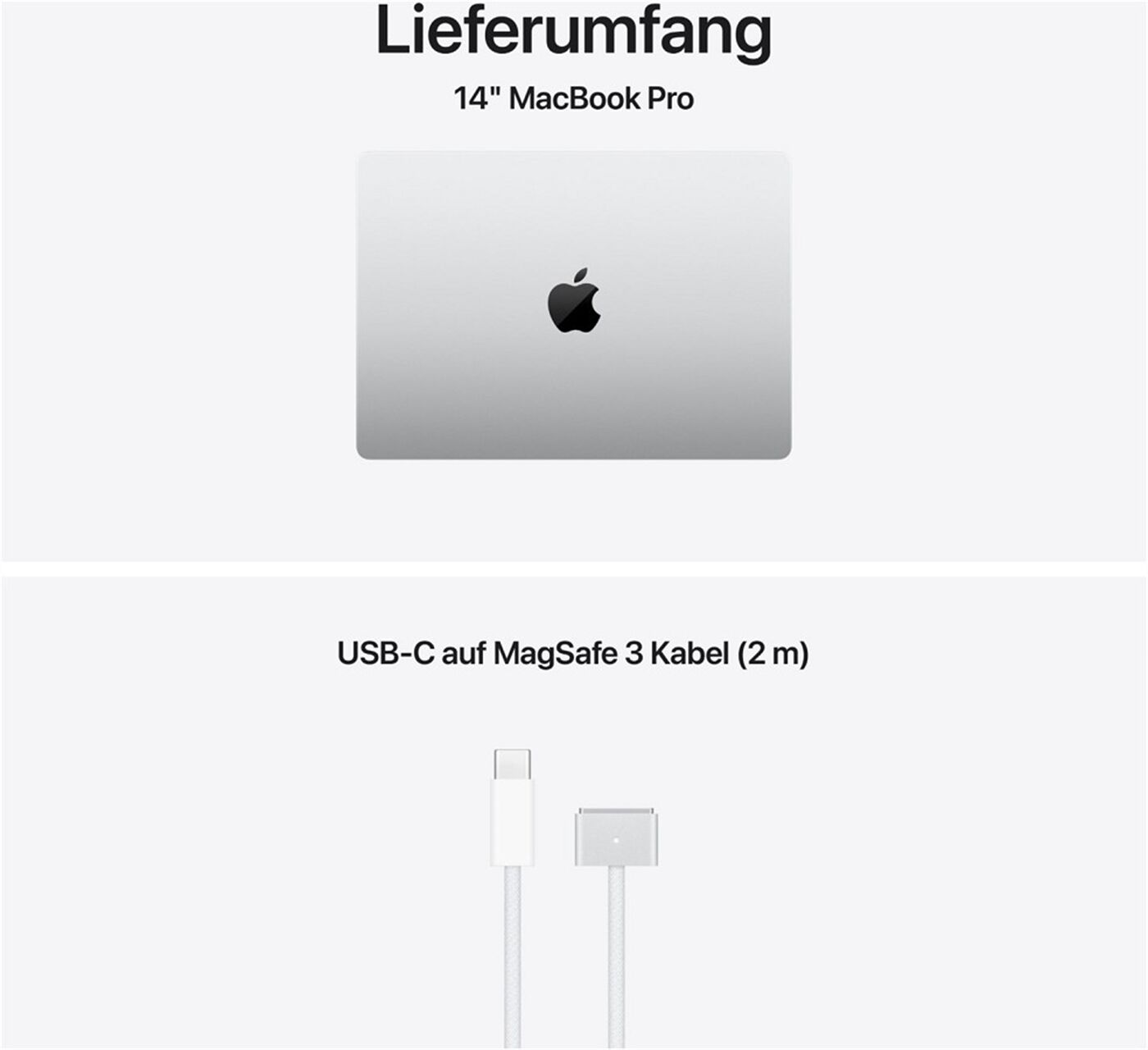 ⁵ Die Displaygröße wird diagonal gemessen. Das Display des 14" MacBook Pro hat oben gerundete Ecken. Als Standard-Rechteck gemessen hat das Display eine Diagonale von 14,2" (35,97 cm). Der tatsächlich sichtbare Displaybereich ist kleiner.