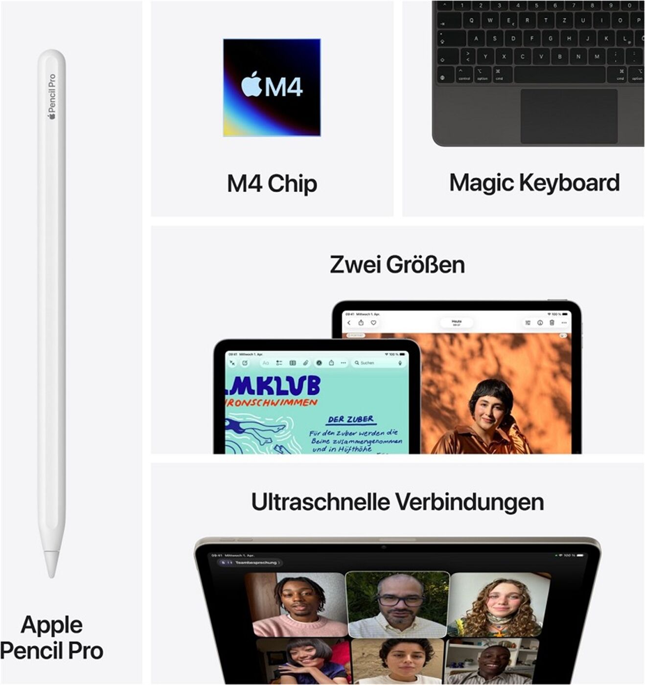 Der Apple Pencil Pro ist separat erhältlich. Kompatibel mit dem iPad Pro (M4 und M5), iPad Air (M2, M3 und M4) und iPad mini (A17 Pro).