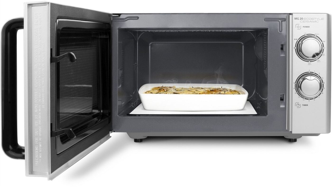 Der Keramikboden mit Mikrowellenreflektor sorgt für eine gleichmäßige Verteilung der Mikrowellen, sodass das Gargut von allen Seiten perfekt zubereitet wird. Der ebene Boden ist sehr leicht zu reinigen und ermöglicht auch das Arbeiten mit großen eckigen Auflaufformen oder Kuchenblechen.