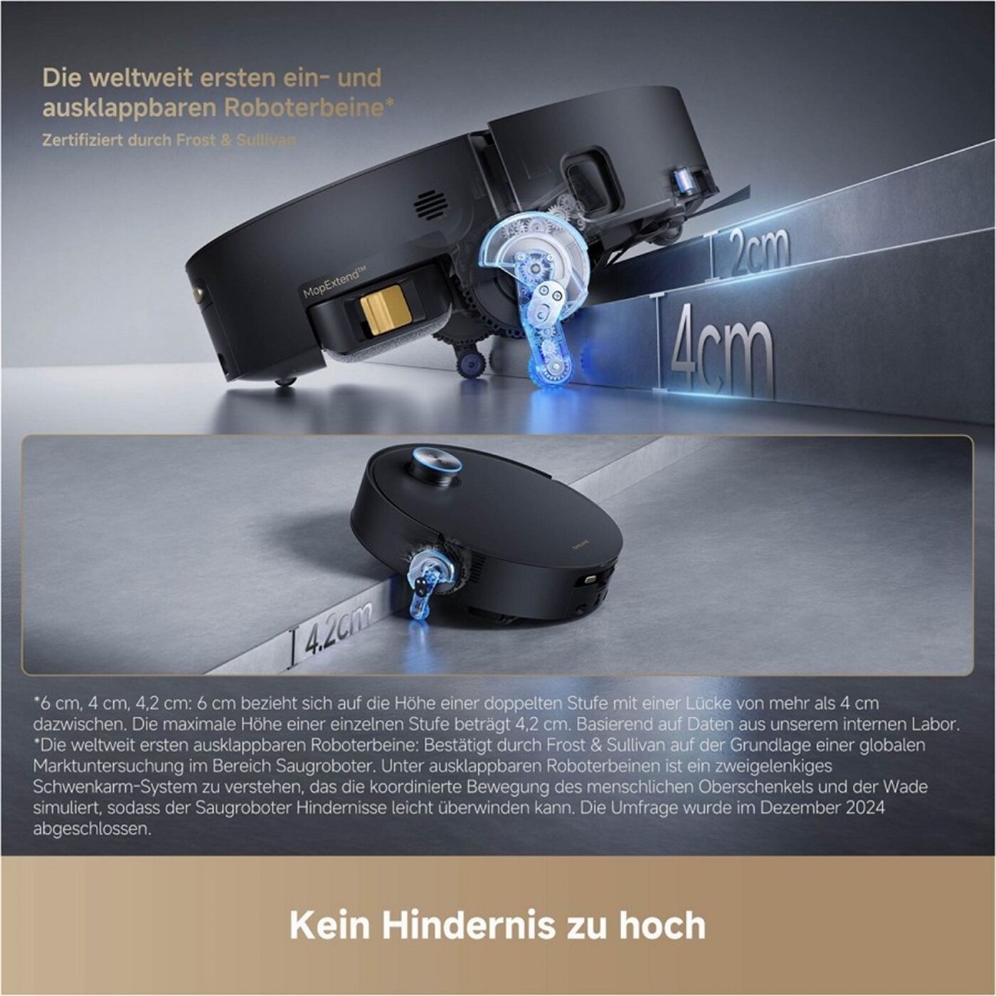 Reinigt auch unter flachen Möbeln: Der einfahrbare LDS-Laserturm ermöglicht die Reinigung unter Sofas, Betten und anderen flachen Möbelstücken. Gründliche Kanten- und Eckenreinigung: Der ausfahrbare Mopp und die ausfahrbare Seitenbürste sorgen dafür, dass kein Bereich ausgelassen wird.